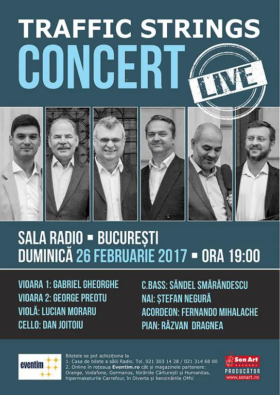 Concert Traffic Strings – 26 februarie 2017 ora 19:00, la Sala Radio din Bucureşti